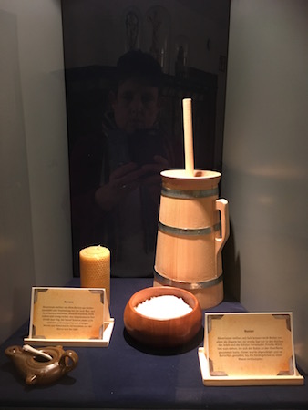 In der Ausstellung werden die unterschiedlichen Rollen der Frauen im Mittelalter betrachtet: als Nonnen oder Mystikerinnen, als Prostituierte oder Heilerinnen, als Bäuerinnen, Handwerkerinnen und Händlerinnen. Die vielen häuslichen Aufgaben, die Frauen bewältigen mussten, werden in Vitrinen anschaulich dargestellt, vom Korbflechten bis zum Federnschleißen, vom Kräutersammeln bis zum Bierbrauen.