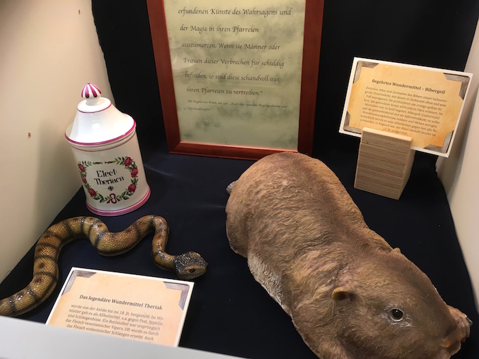 Die Ausstellung führt in die magische Gedankenwelt des Mittelalters und zeigt, welche okkulten Kräfte Tieren, aber auch Steinen und Pflanzen zugeschrieben wurden, wie weit verbreitet abergläubische Praktiken im Alltag waren und mit welchen absonderlichen Methoden man versuchte, die Zukunft vorherzusagen oder seine Gegner zu bezwingen.